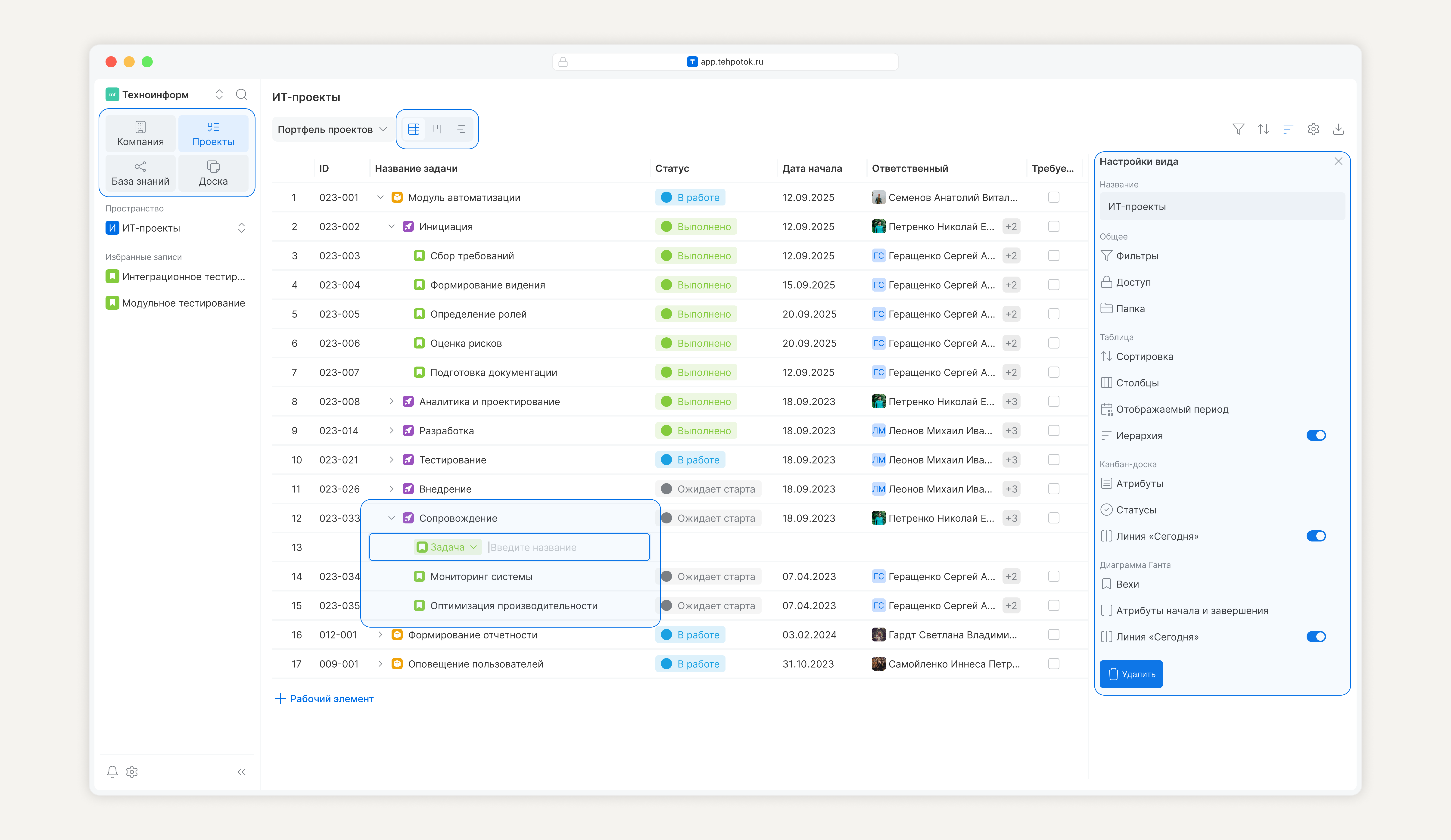 Следите за ходом работы в удобном формате: иерархическая таблица, диаграмма Ганта или Канбан-доска