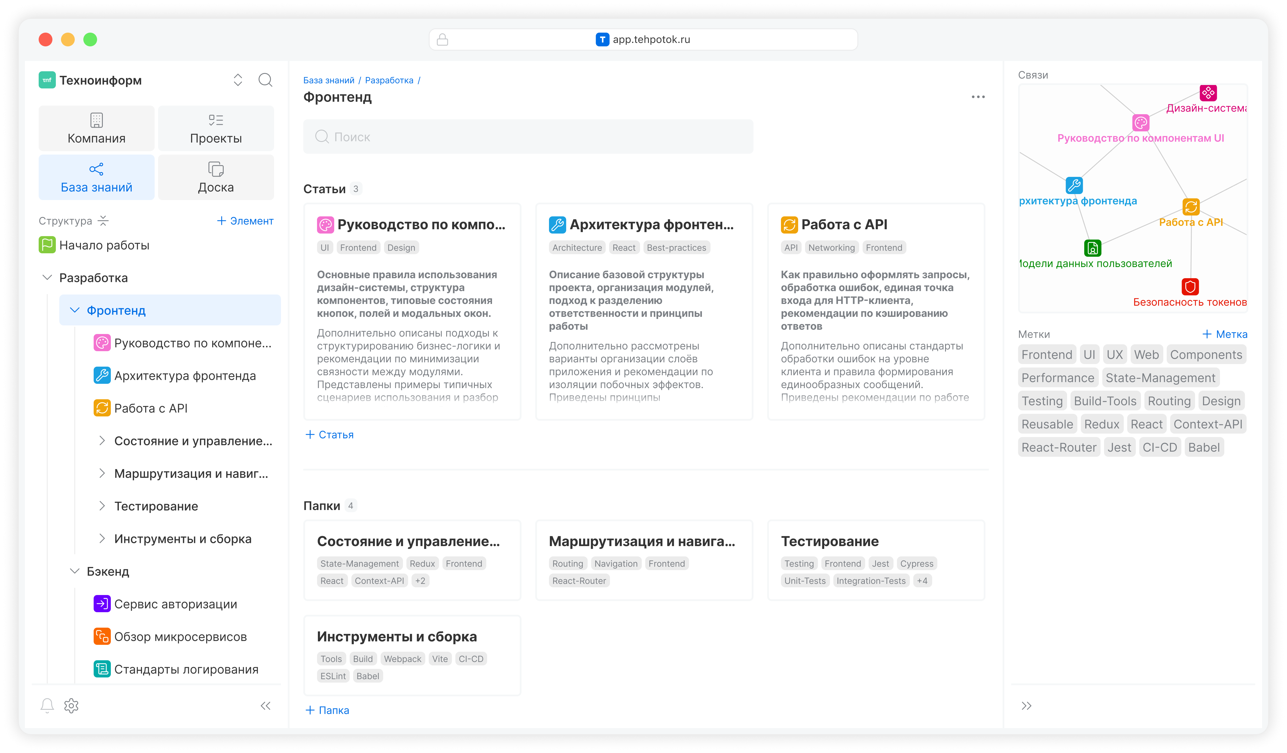 Теги помогают быстро находить и фильтровать статьи и папки по категориям